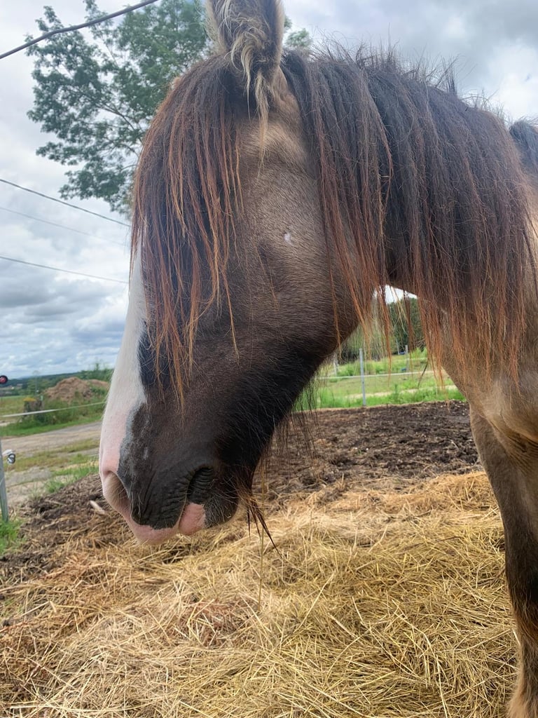 J ai eu la chance de la recevoir au sein de l'élevage, c'est une des rares jument Irish cob Grullo en France. Je remercie d'ailleurs sa naisseuse de m'avoir offert cette opportunité.